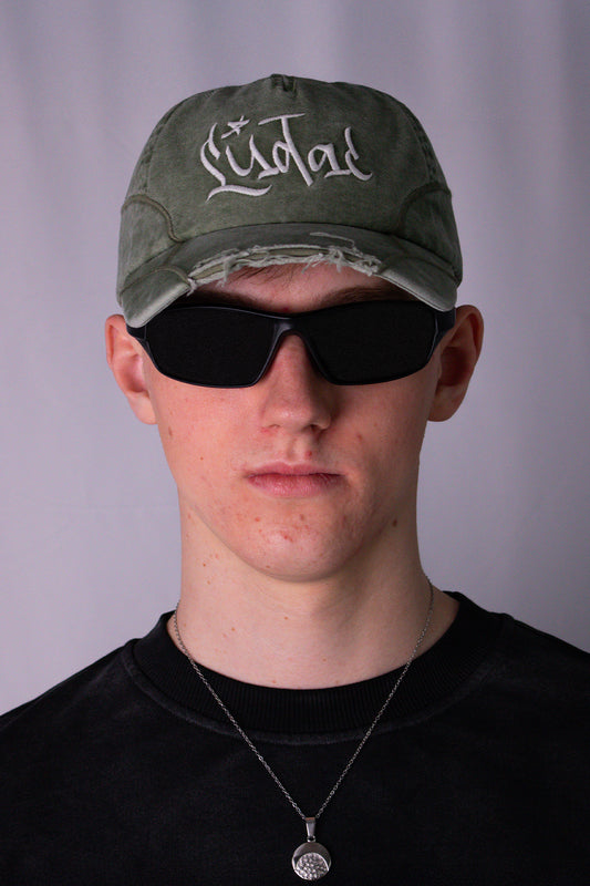Olive Distressed Star Cap